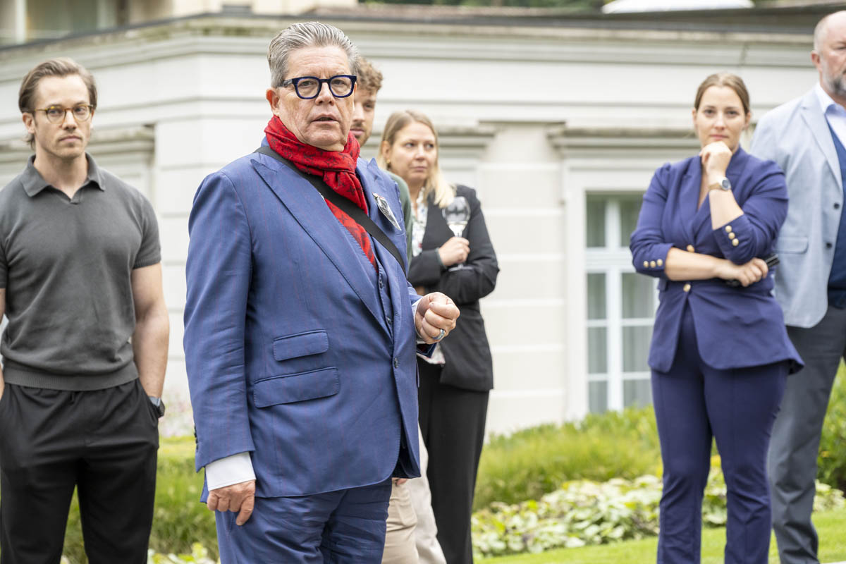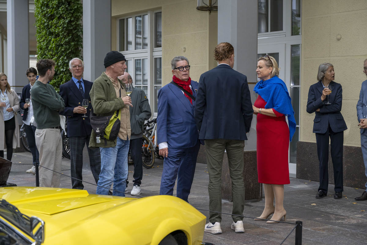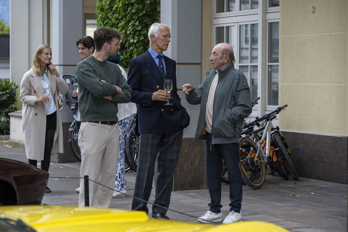 Reto A. Mauerhofer, Vertreter der Peter Monteverdi Automobilbaustiftung, liess mit spürbarer Leidenschaft die Geschichte von Peter Monteverdi lebendig werden und führte die Gäste mit viel Engagement persönlich durch die Ausstellung. Besonders anschaulich wurden die Geschichten, als Ruedi Wenger, Ehrenpräsident des Monteverdi-Clubs und langjähriger Geschäftspartner Monteverdis, von faszinierenden Anfertigungsdetails erzählte: So wurden etwa Limousinen mit eingebauten Fernsehapparaten ausgestattet, damit die Passagiere auf den Rücksitzen fernsehen konnten. Ein weiteres beliebtes Detail waren Autoschlüssel, die identisch mit den Wohnungsschlüsseln waren – ein Stück Komfort, das den Alltag der Besitzer erleichterte.