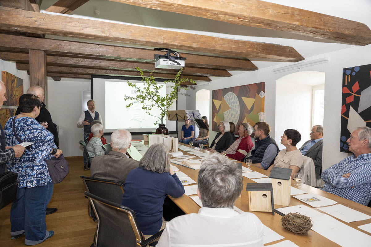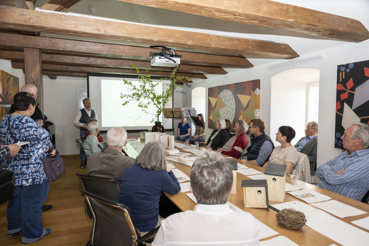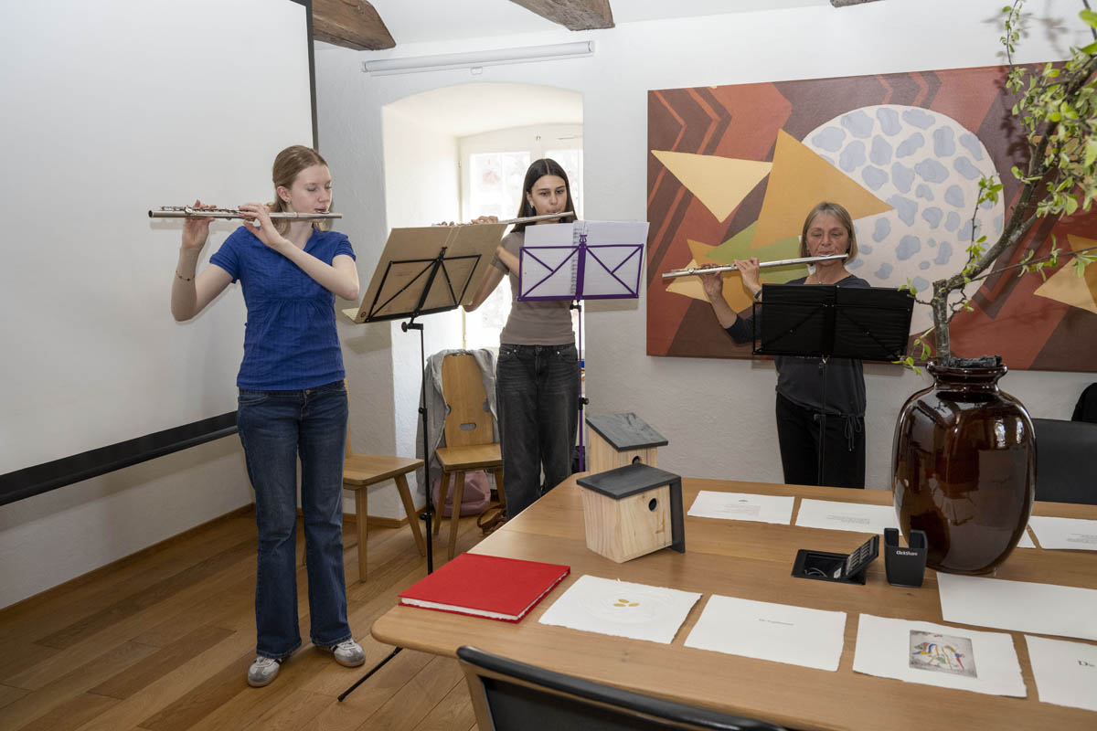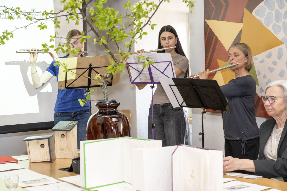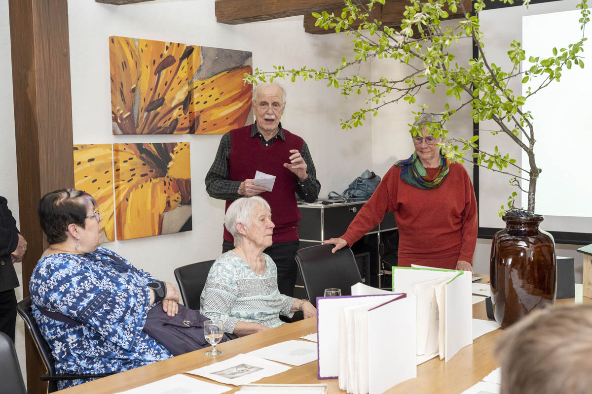 Die Bindung erfolgte in japanischer Blockbindung, in Schweizer Broschur, mit vierseitigem Büttenrand in einem Hardcoverumschlag aus Leinen.