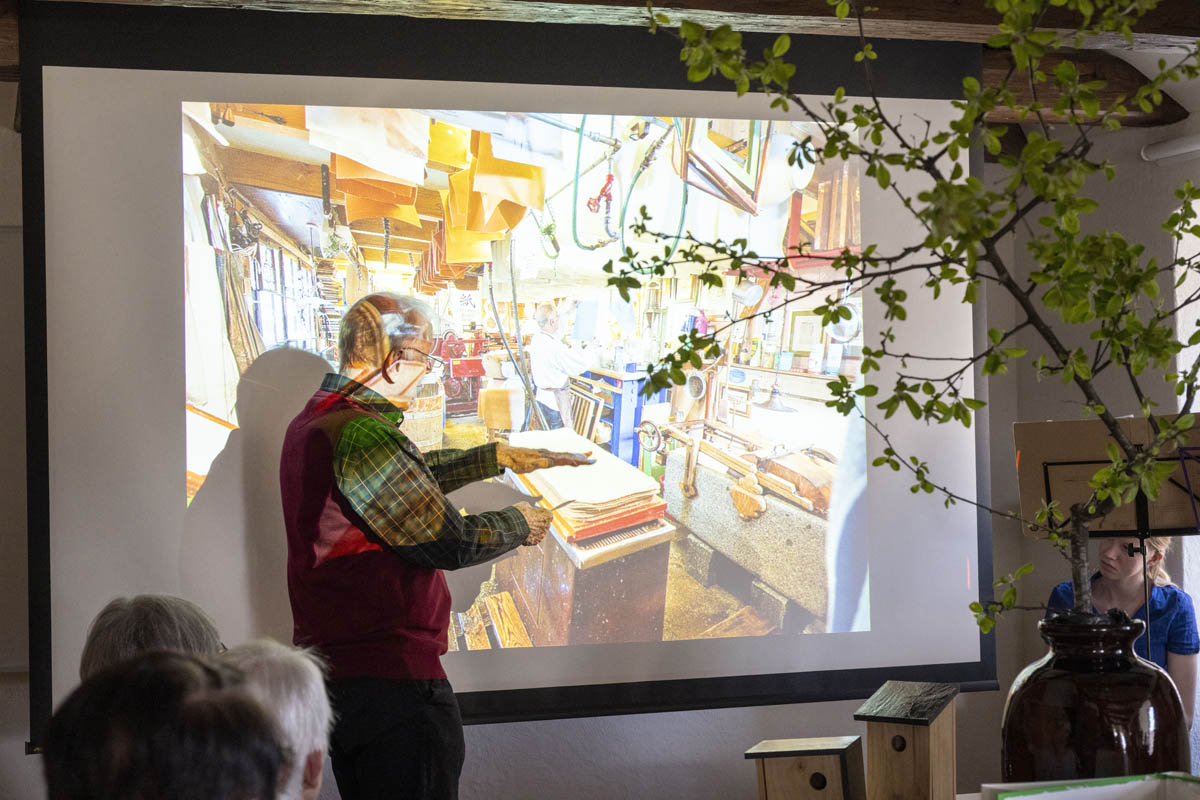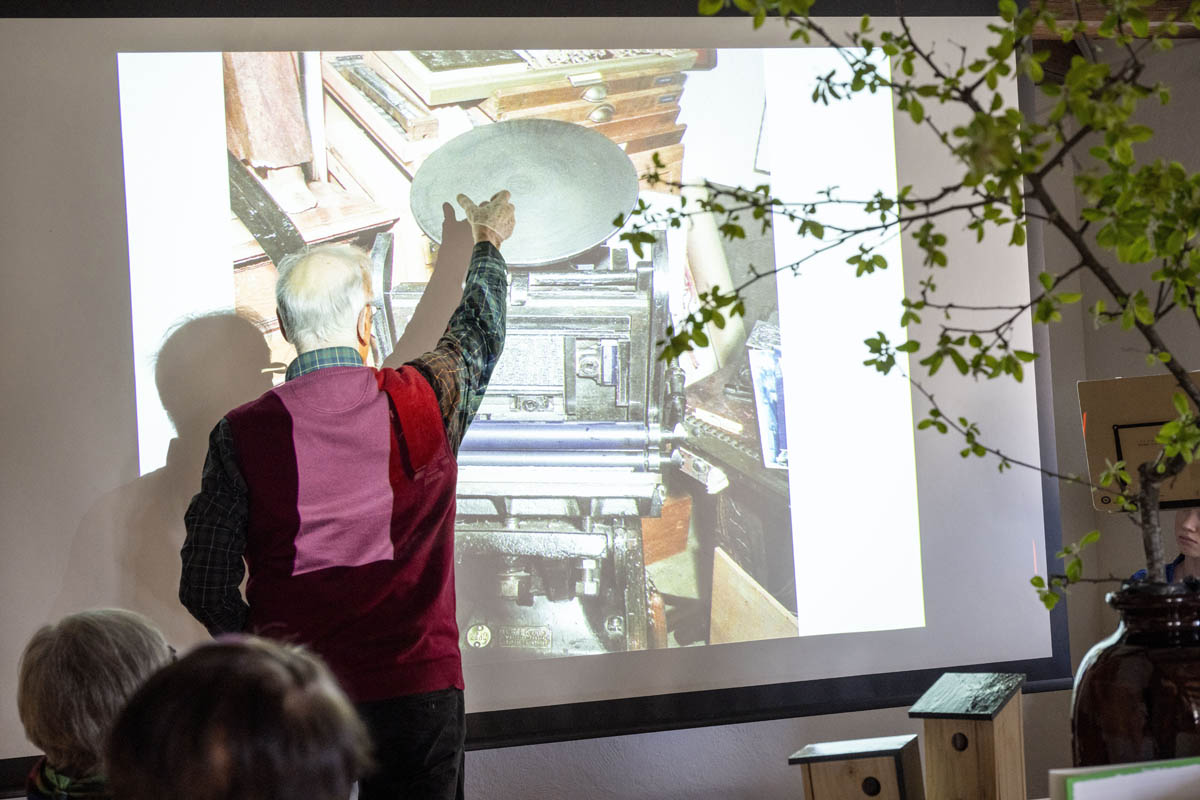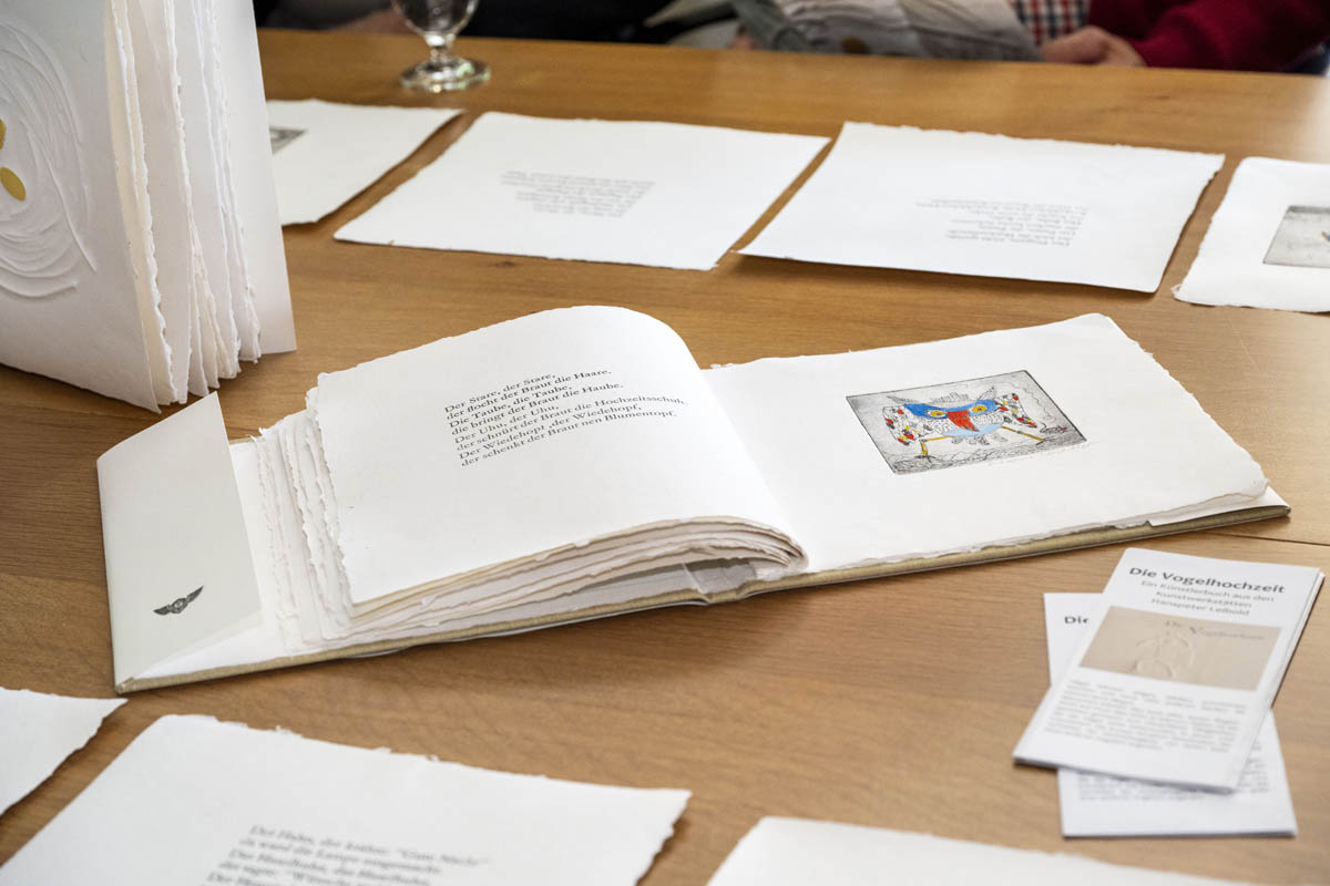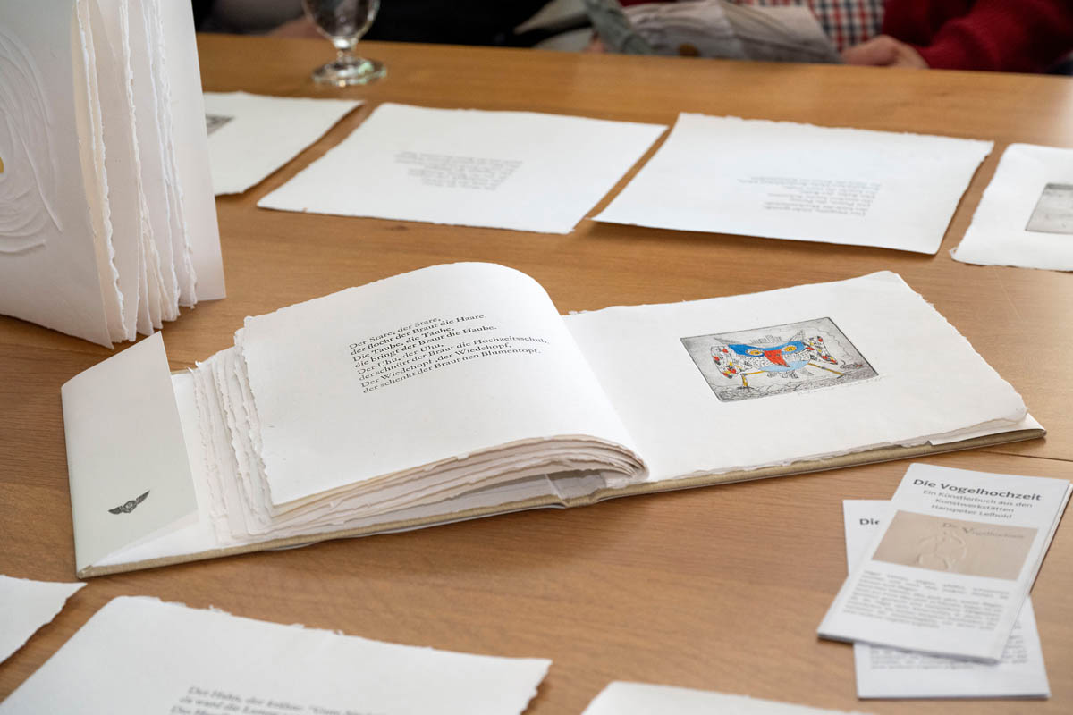 Der Text wurde handgesetzt, im Buchdruck und auf dem Kahle Handtiegel Nr. 2282 gedruckt. Das Buch beinhaltet auch mehrstufige Handblindprägungen. Die Vergoldung ist in 24 Karat.