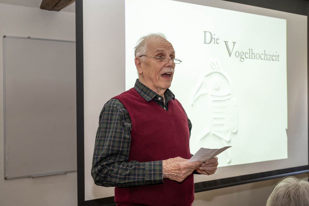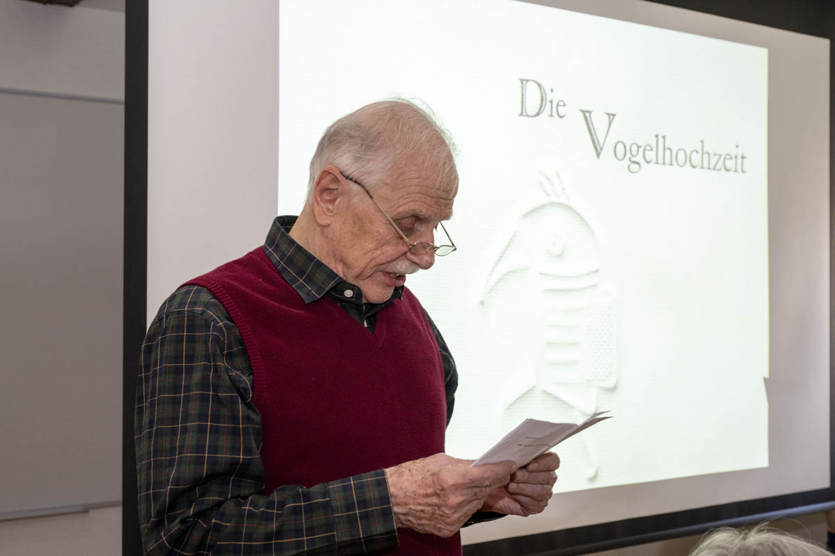 «Vögel können singen, pfeifen, schwimmen, tauchen und noch viele andere Sachen. Sie können auch fliegen. Menschen können dies auch alles, ausser fliegen. Wohl aus Frust dies nicht zu können, haben sie ein Spottlied gemacht und menschliche Fähigkeiten, die die Vögel nicht beherrschen, in dieses Lied transferiert. Die kurzen Strophen beschreiben das Verhalten der Hochzeitsgäste, von denen jeder einer anderen Vogelart angehört.»