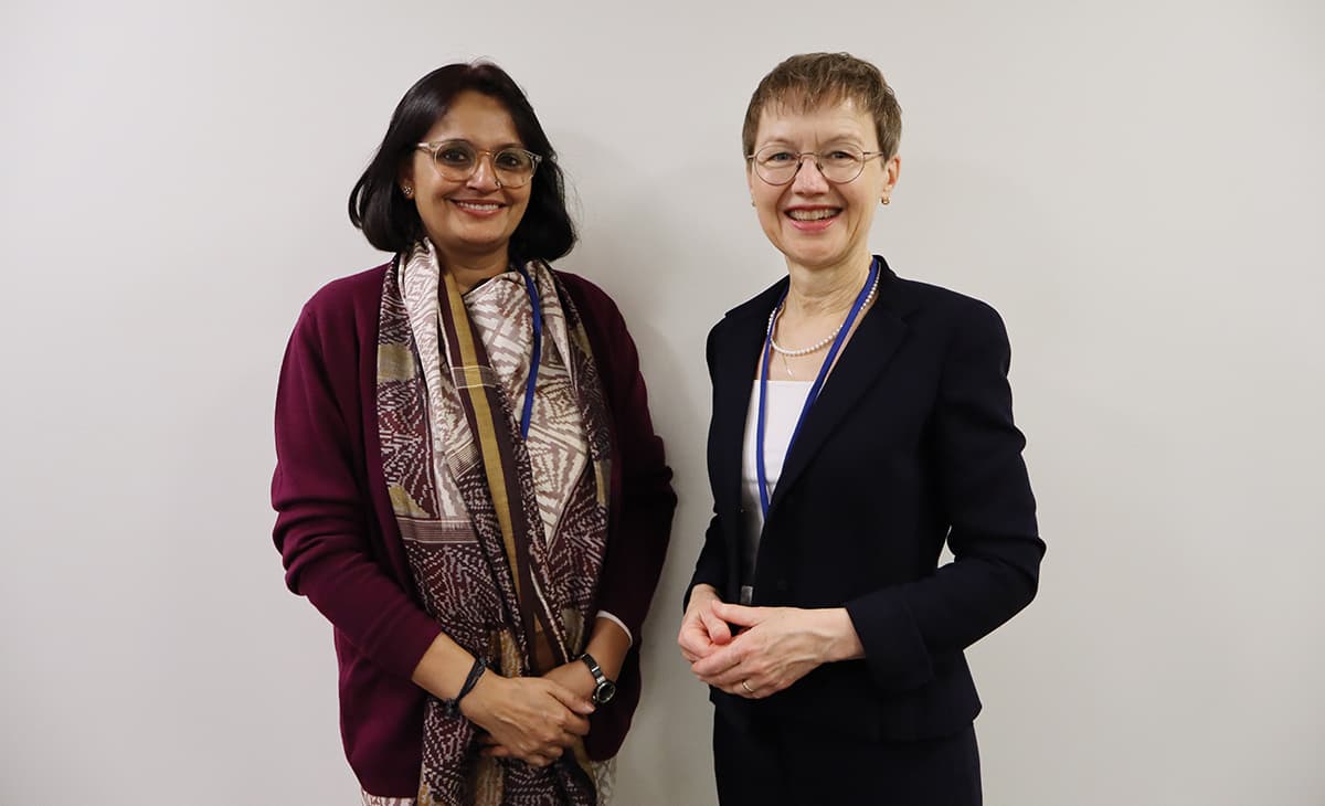Regierungschefin Brigitte Haas und Delegationsleiterin Anuradha Thakur, Secretary of the Department of Economic Affairs im indischen Finanzministerium.