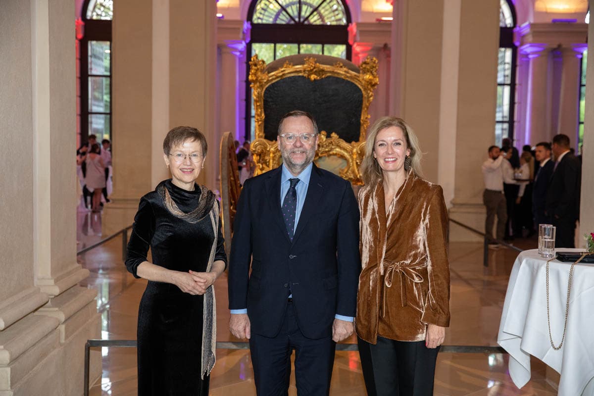 Regierungschefin Brigitte Haas, Josef Schellhorn, Staatssekretär im Bundesministerium für europäische und internationale Angelegenheiten der Republik Österreich, Regierungschefin-Stellvertreterin Sabine Monauni beim Liechtenstein Empfang. (Quelle: Michele Agostinis)