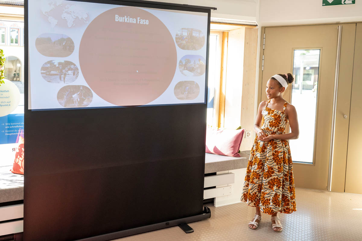 Nach der Begrüssung durch Vereinspräsidentin Tanja Cissé nahm ihre Tochter Lina, Kinderbotschafterin des Vereins, das Publikum mit auf eine kurze «Reise» nach Burkina Faso. Mit Zahlen, Fakten und persönlichen Eindrücken zeichneten Mutter und Tochter gemeinsam ein lebendiges Bild des westafrikanischen Staates.
