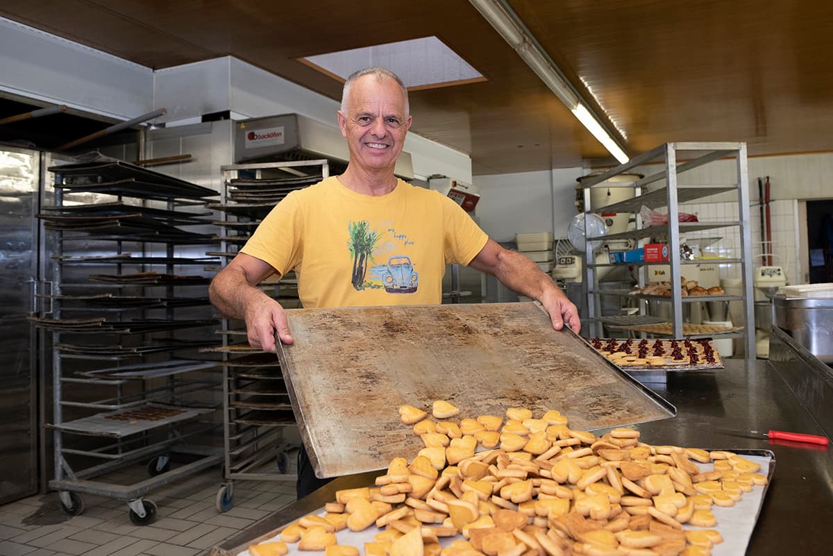 «Jedes Jahr backen wir circa 550 bis 600 kg Guetzli. Wir produzieren nicht auf Vorrat, das Gebäck wird auf Bestellung hergestellt», unterstreicht Mario Heeb, gelernter Conditor und Inhaber der Eschner Krömliwerkstatt.