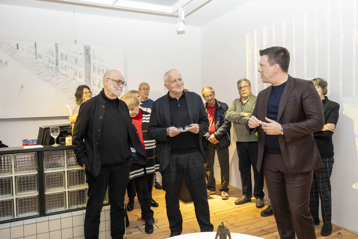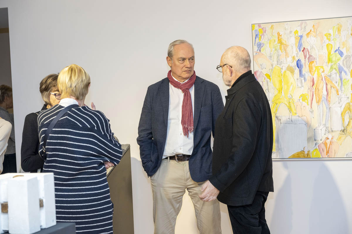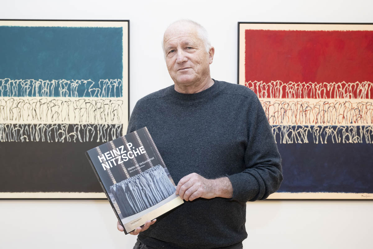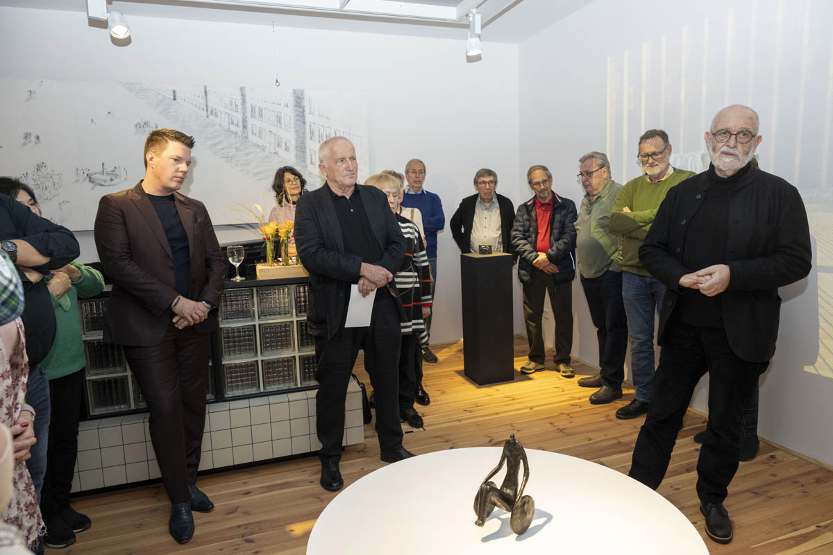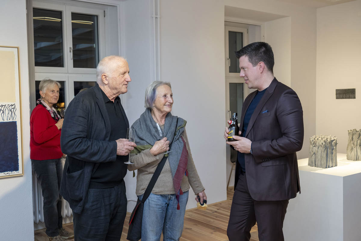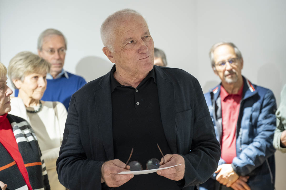 Der Künstler Heinz P. Nitzsche eröffnete die Vernissage mit einem herzlichen Dank an alle, die zur Ausstellung beigetragen haben, an Weggefährten, Unterstützer und an die Mitwirkenden des Buchprojekts «Werke der Verbundenheit».