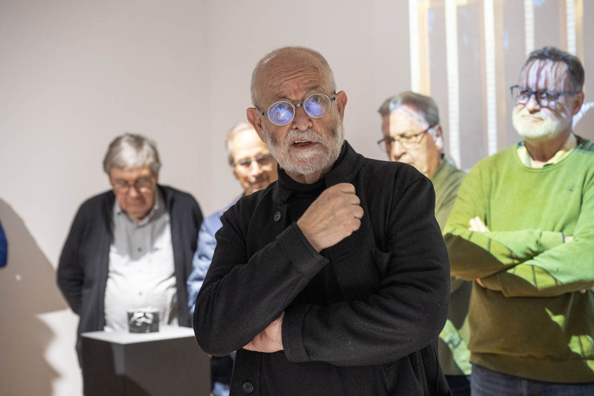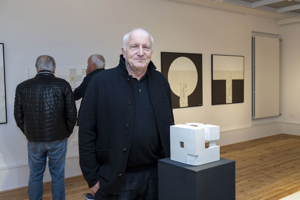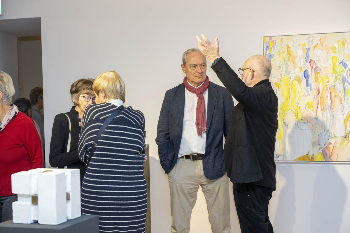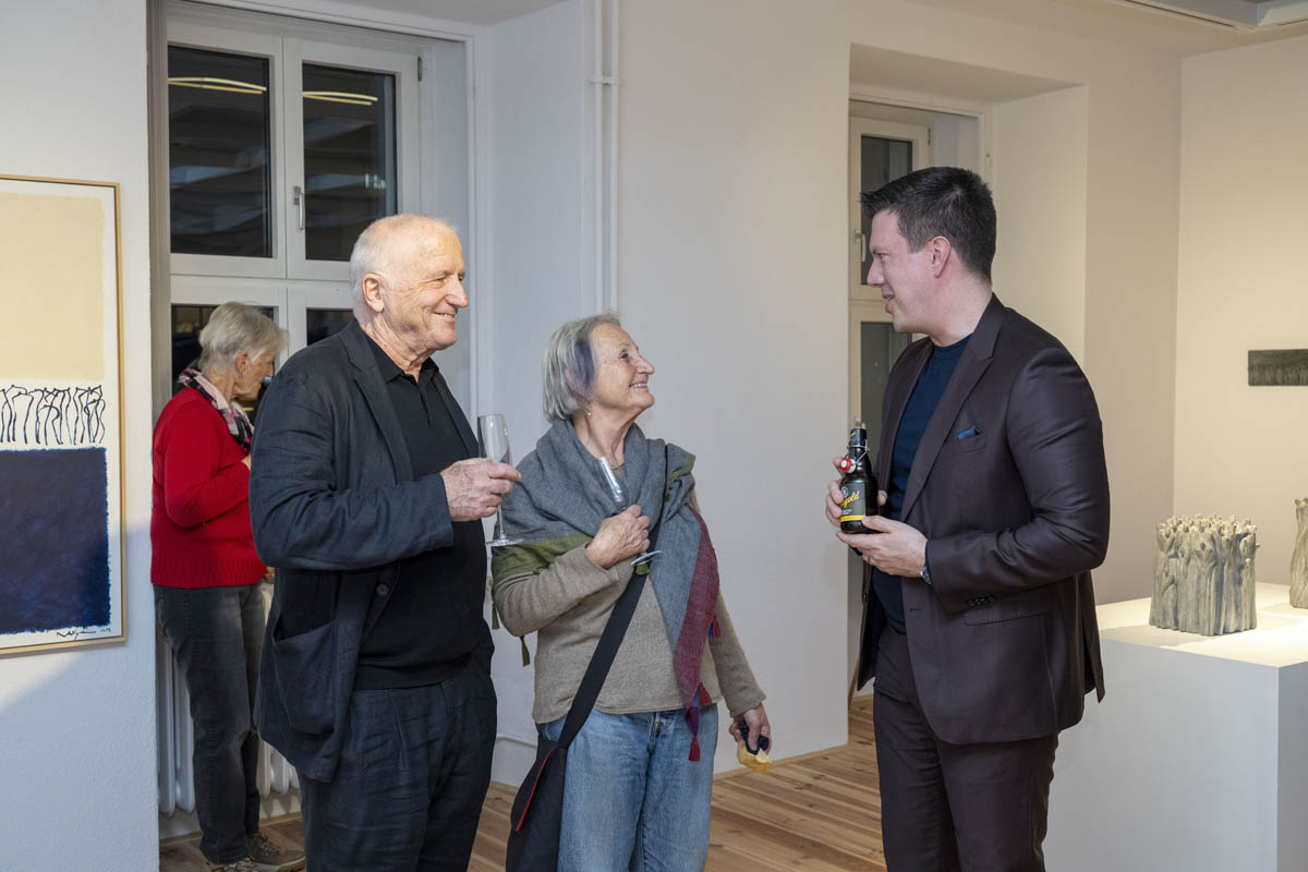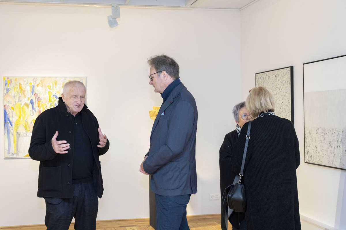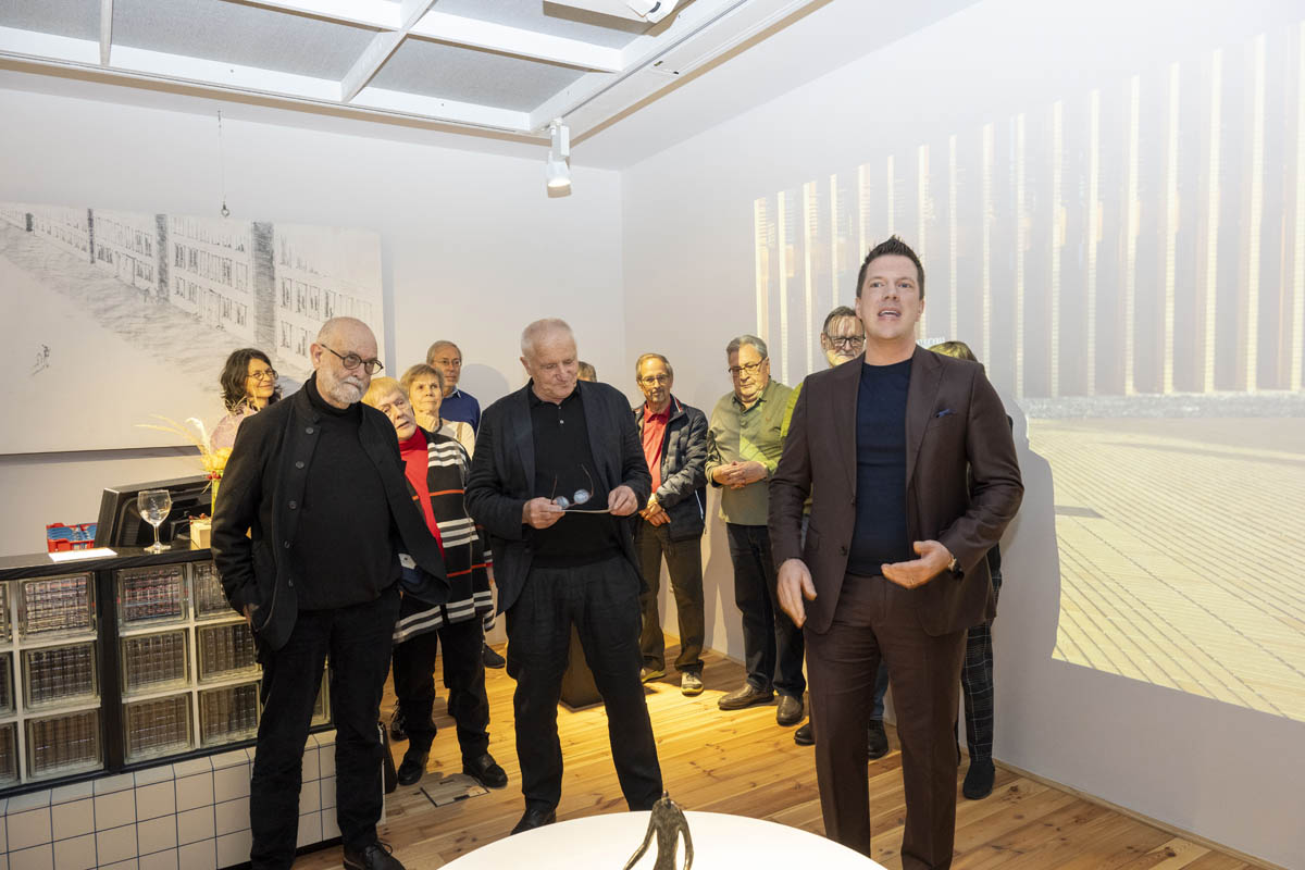Der Künstler Heinz P. Nitzsche eröffnete die Vernissage mit einem herzlichen Dank an alle, die zur Ausstellung beigetragen haben, an Weggefährten, Unterstützer und an die Mitwirkenden des Buchprojekts «Werke der Verbundenheit».