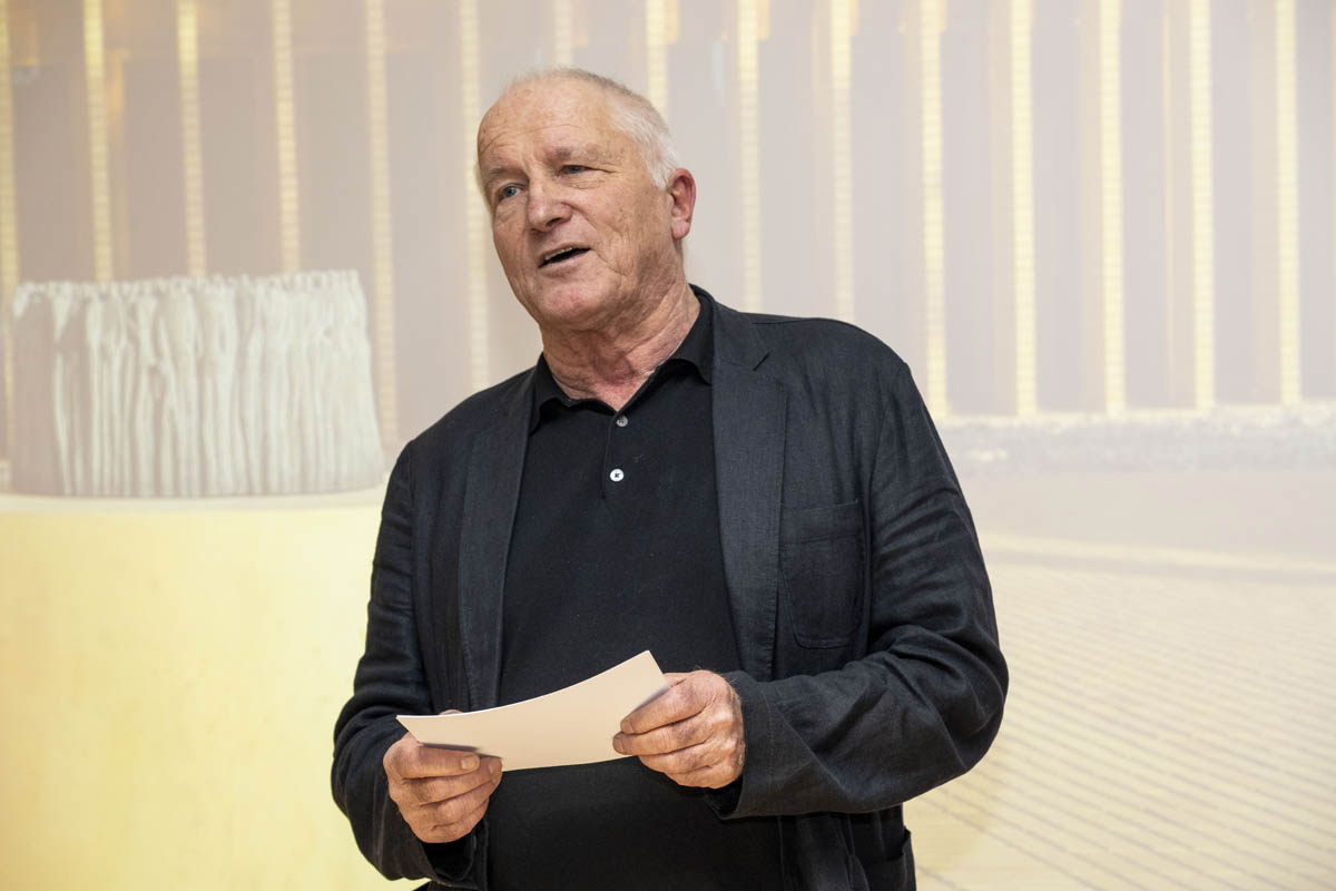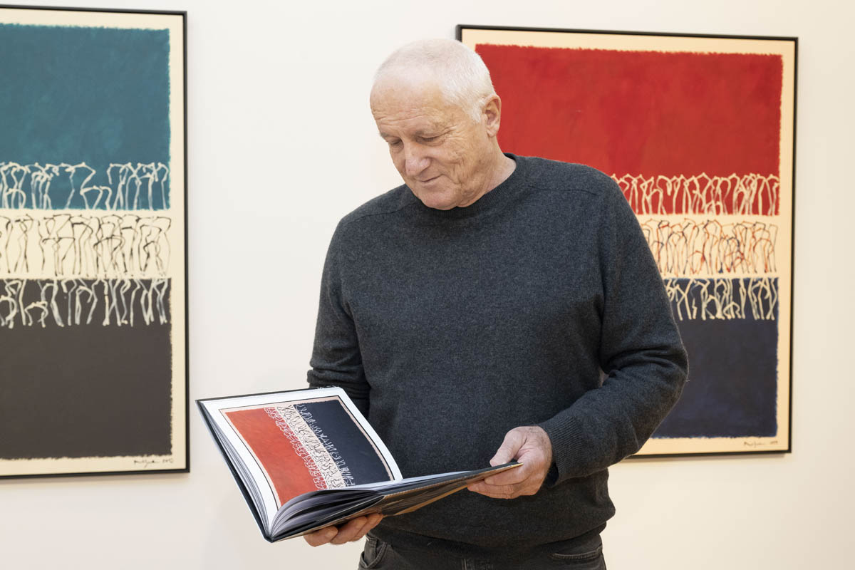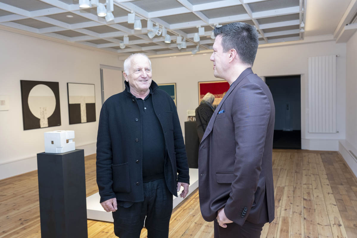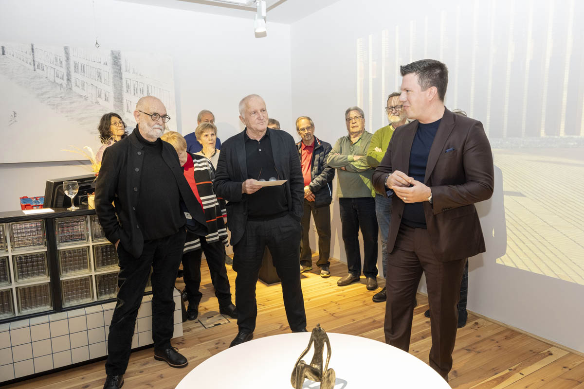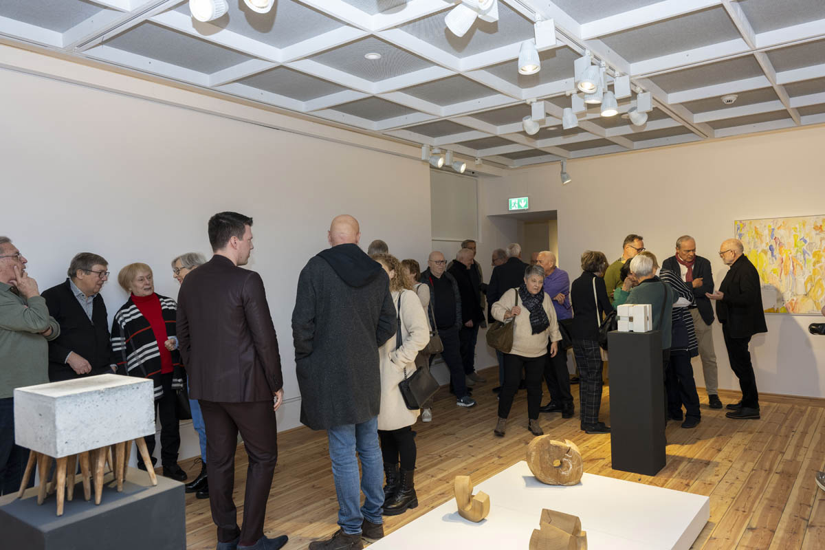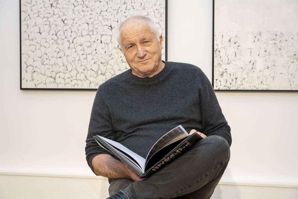 Der Künstler Heinz P. Nitzsche eröffnete die Vernissage mit einem herzlichen Dank an alle, die zur Ausstellung beigetragen haben, an Weggefährten, Unterstützer und an die Mitwirkenden des Buchprojekts «Werke der Verbundenheit».