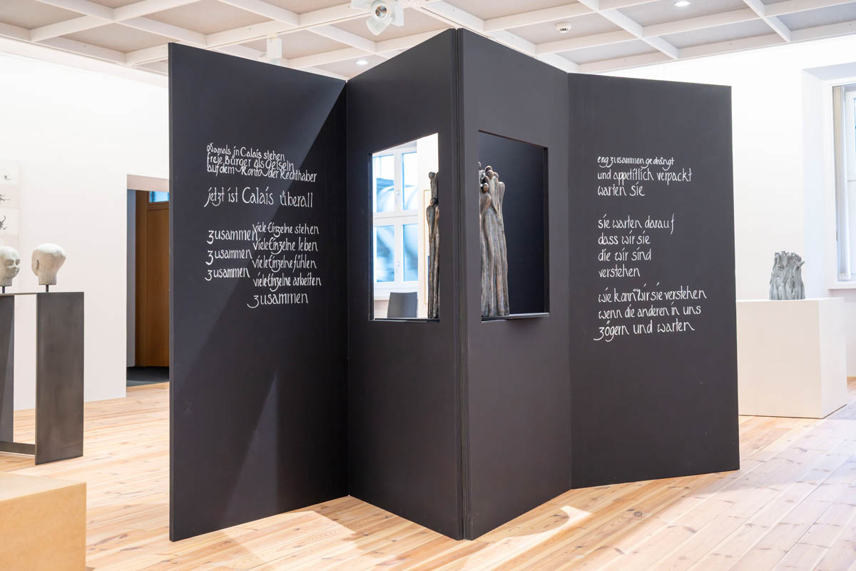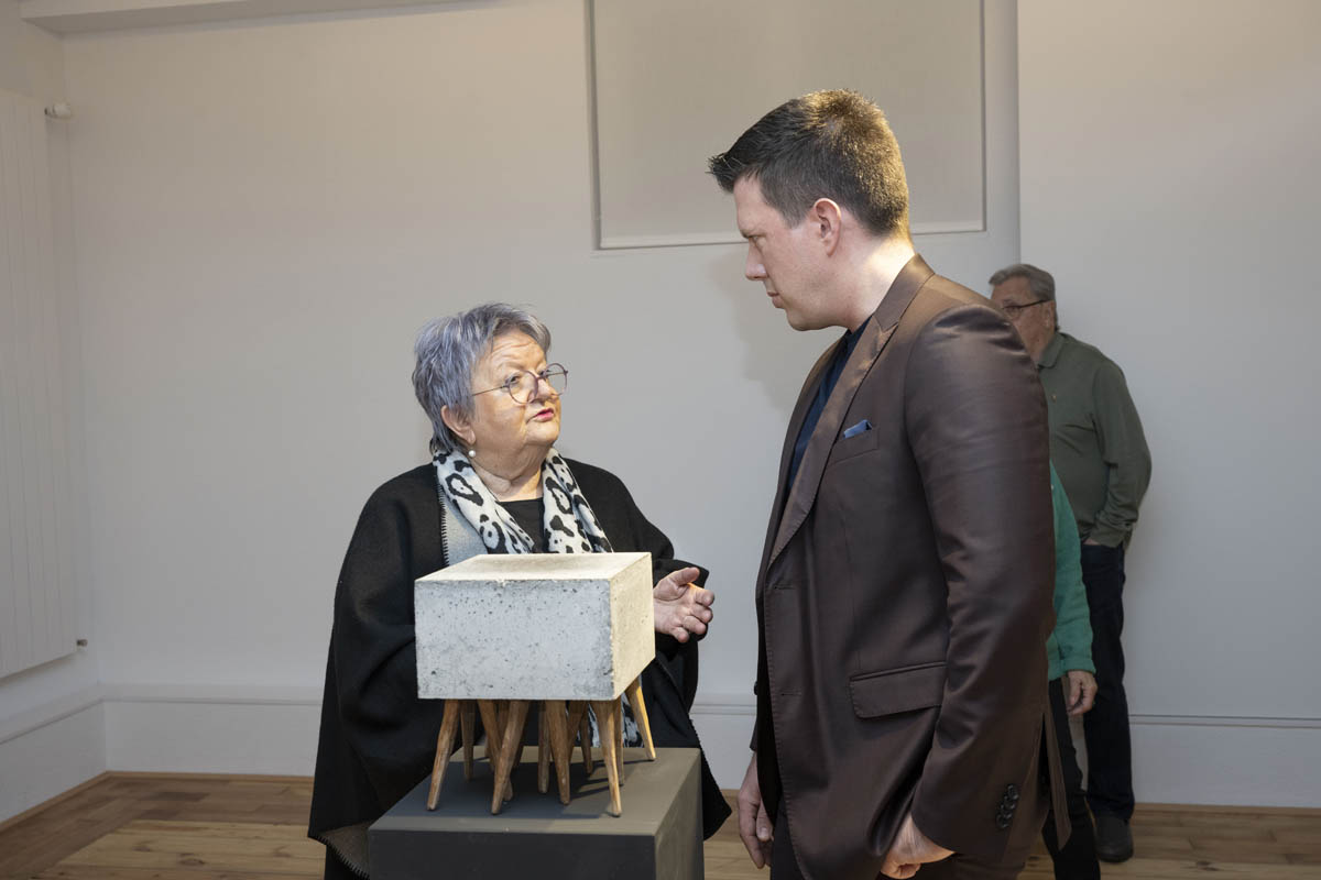 Sein zweites Beispiel galt einem sehr privaten Werk: «zusammenrücken», einer kleinen Skulptur, die Manuel Frick selbst erworben hat und die in seinem Garten steht. Sie sei für ihn tägliche Inspiration und Erinnerung daran, wie wertvoll Beziehungen sind.