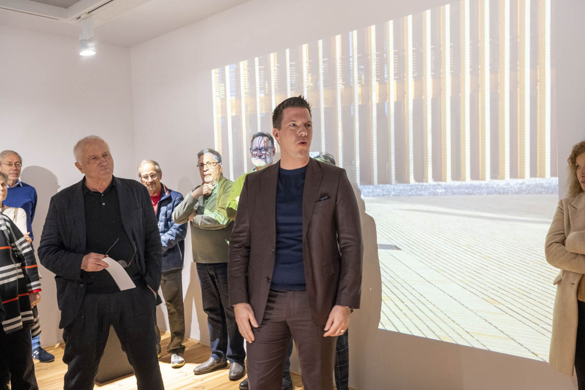 Anschliessend sprach Toni Büchel, Leiter Geschichte und Kultur der Gemeinde Schaan. Er betonte wie wichtig es sei, Zeichen zu setzen – für Verbundenheit, Solidarität und Zusammengehörigkeit. Beim Aufbau der Ausstellung habe er Nitzsches Werke intensiv betrachten dürfen: Kunstwerke, die in ihm Resonanz auslösen, Assoziationen wecken und in einer Zeit des Wandels auch Hoffnung vermitteln. «Es ist wohltuend, etwas so Manifestes zu sehen», sagte Toni Büchel, «etwas, das uns an das Gemeinsame erinnert.»