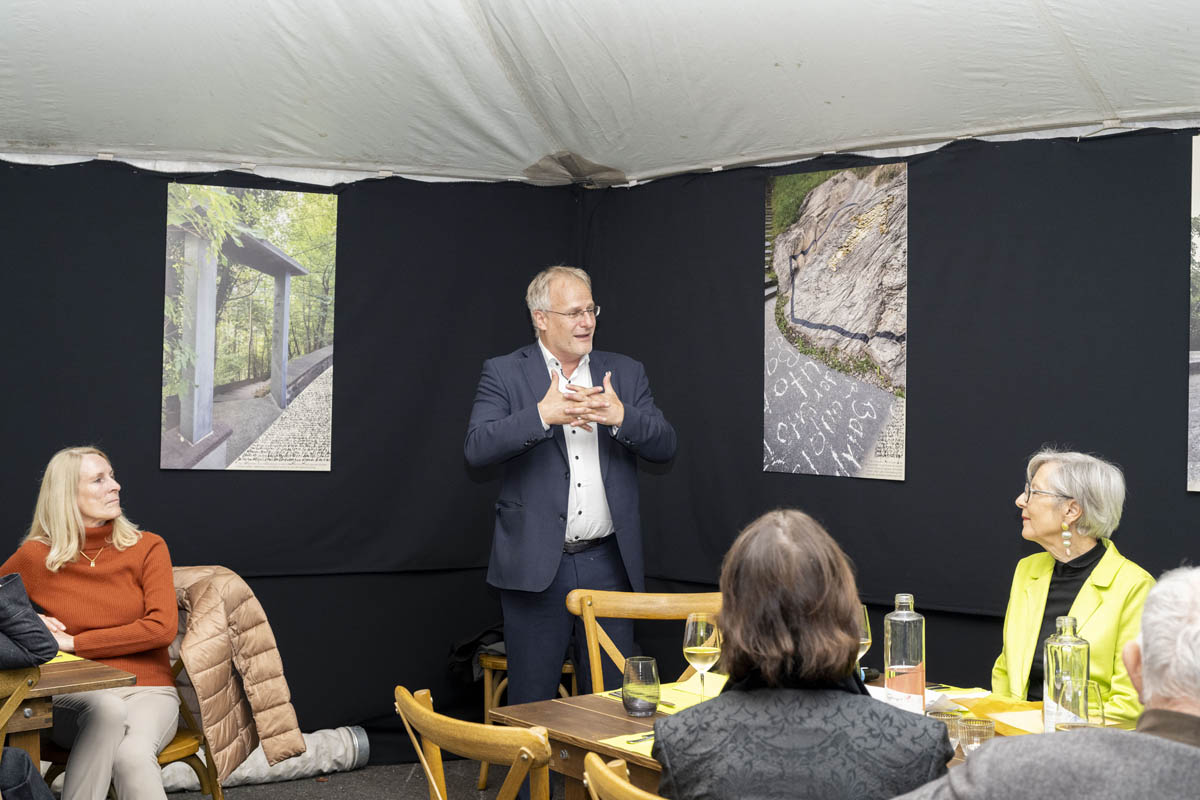 Im Rahmen des Jubiläums zeigt sich diese Philosophie auch in der neuen Ausstellung: «Der nicht geworfene Stein» – ein Werk, das zum Nachdenken anregt und den Geist des Ortes verkörpert.