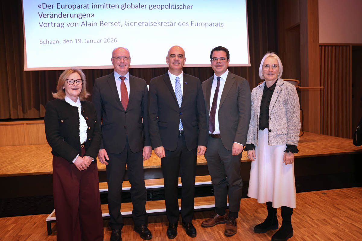 Am Montag, 19. Januar 2026, weilte der Generalsekretär des Europarats, Alain Berset, zu Besuch in Liechtenstein. Der Besuch diente dem institutionellen Austausch mit politischen Vertreterinnen und Vertretern des Landes sowie der Vertiefung der Zusammenarbeit mit dem Europarat. Im Mittelpunkt standen dabei die Aufgaben und Herausforderungen der Organisation in den Bereichen Menschenrechte, Demokratie und Rechtsstaatlichkeit vor dem Hintergrund aktueller geopolitischer Entwicklungen in Europa.